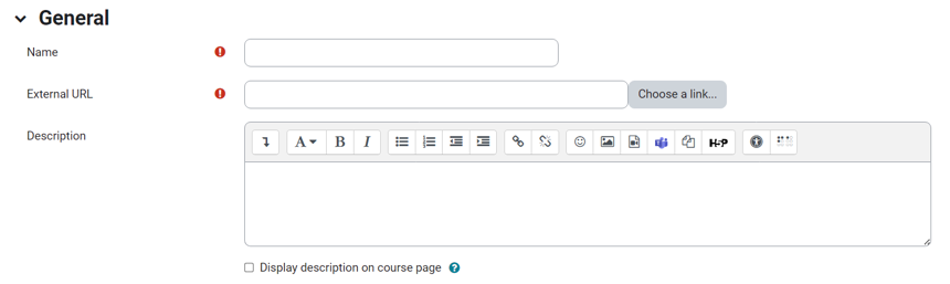 The URL resource type allows you to display a link to a webpage on your Course. Ensure that you are linking to a page that is not restricted and is open to students.