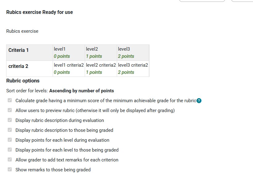 - Finally save the rubric definition by clicking Save rubric and make it ready or Save as draft. These set the form definition status respectively as described at the Advanced grading methods page.